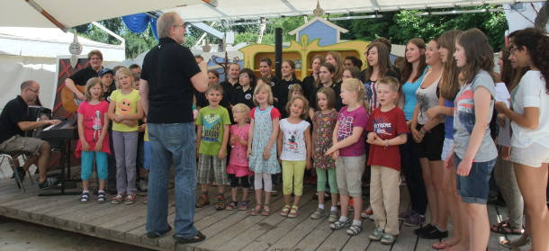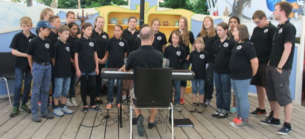 Zum Abschluss des Auftritts sangen sie dann gemeinsam mit zwei weiteren Chören das extra für diesen Tag geübte Lied Simsalasing.