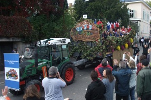 Auf dem Wagen zeigte der Kinderchor die verschiedenen Trachten, von der "alten Mostertracht" bis hin zum neuen Outfit.