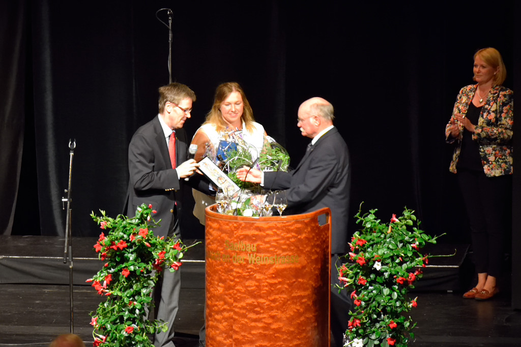 Die Vorsitzenden der Weinkehlchen Dr. Matthias Frey und Manuela Nagel gratulierten nochmals der Weinbruderschaft der Pfalz.