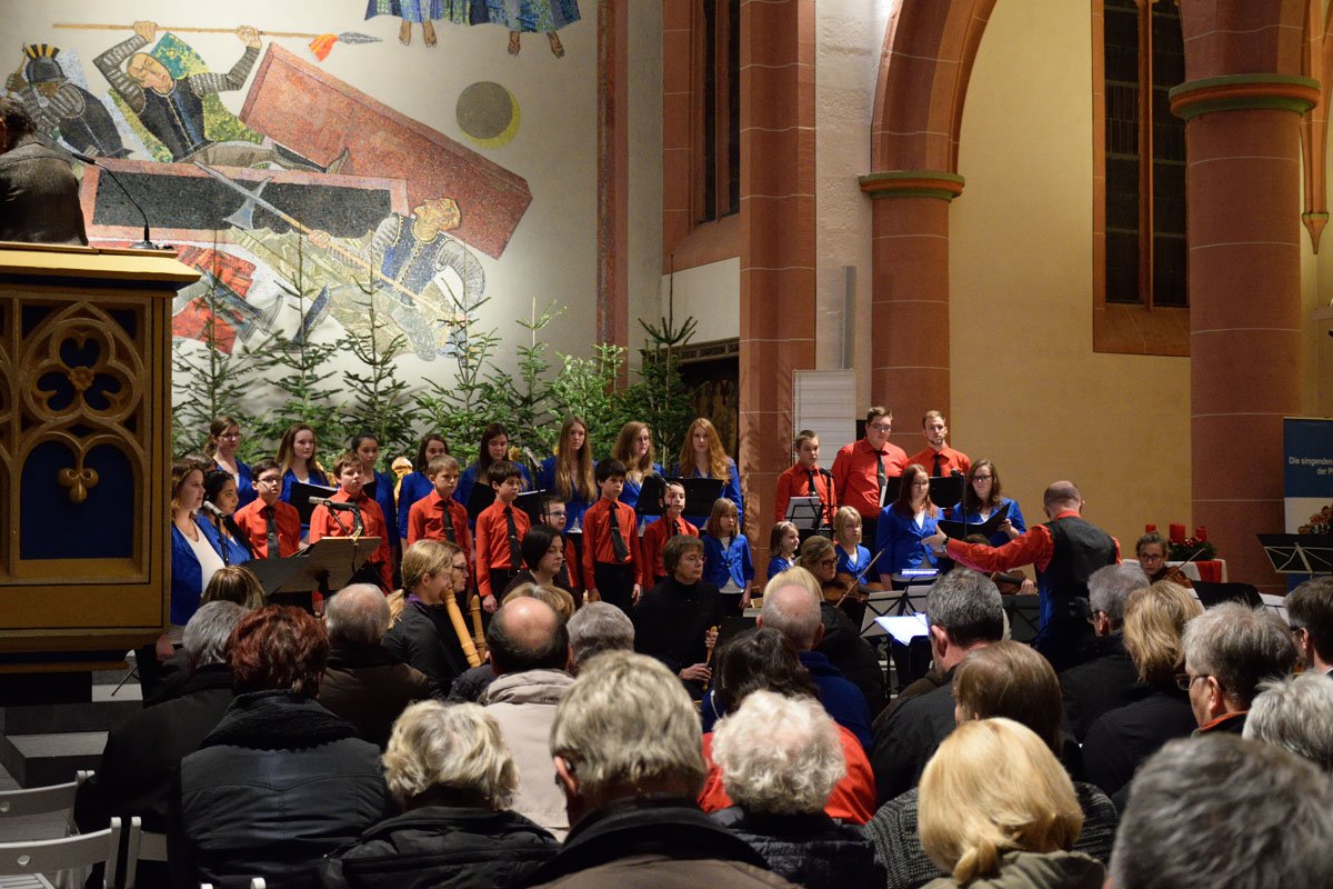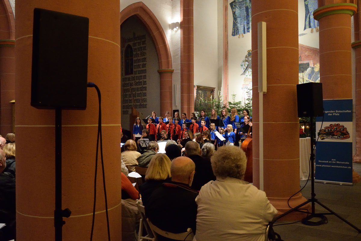 Zum ende das Jubiläumsjahres sangen die Pfälzer Weinkehlchen das Oratorium "Die Heilige Nacht" von Michael Benedikt Bender. Zusammen mit dem Orchester erzählten die Kinder die Geschichte Jesus von der Geburt über die Flucht nach Ägypten bis zur Rückkehr nach Israel.
