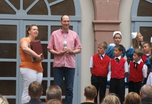 Die ganze Woche scheint die Sonne. Und heute Nachmittag, wo die Pfälzer Weinkehlchen das Musical "Der Melodieexpress" aufführen wollen regnet es.