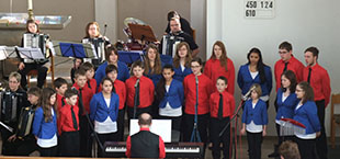 Zu beginn des Jubiläumsjahres luden die Pfälzer Weinkehlchen gemeinsam mit dem Akkordeon-Orchester Keiper aus Rockenhausen zu einer Matinee in der Pauluskirche Haßloch ein. Für den Kinder- und Jugendchor war es ein langer Vormittag, denn sie beteiligten sich noch mit musikalisch Beiträgen am vorangegangenen Gottesdienst.
