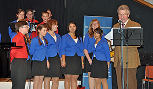 Das Serenadenkonzert zum 65jährigen Bestehen nutzte der Kinderchor „Pfälzer Weinkehlchen“ auch zu Ehrungen von Kindern und Jugendlichen, die schon viele Jahre bei den „Singenden Botschaftern der Pfalz singen“. Kreischorleiter (Kreischorverband Neustadt) Fritz Kauth, in den 50er Jahren selbst ehemaliges Weinkehlchen, übergab Urkunden im Auftrag der Deutschen Chorjugend (Berlin) und der Chorjugend des Chorverbandes Pfalz, deren 2. Vorsitzende Karin Weber im Publikum war.